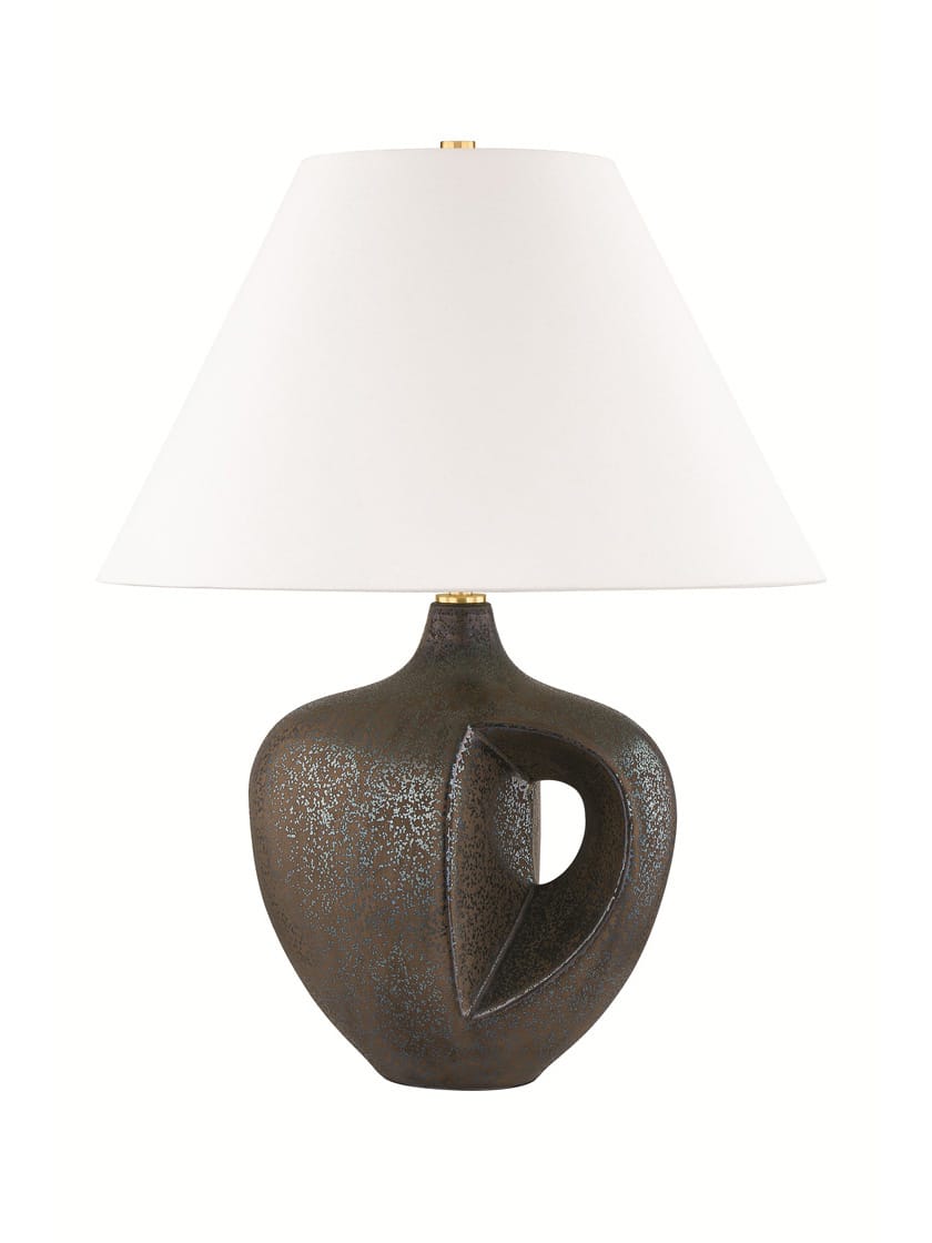 An exploration of material, design, and space, Avenel’s generous curves are punctuated by a striking cutout. A conversation between form and negative space, this table lamp brings artful balance to modern interiors. Topped with a sharply tapered white linen shade and finished with Aged Brass metalwork, Avenel proves zen is more than a state of mind.
