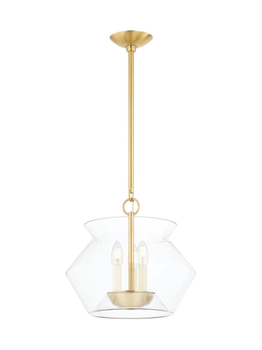 An eye-catching design, Edmonton features an Aged Brass or Polished Nickel arm rising up from a bowl-like vessel creating the illusion that the clear, handblown glass shade is floating around the candlesticks at the center. Combining a modern shape with timeless elements, this stunning 3 light lantern is comfortable in many different interiors.
