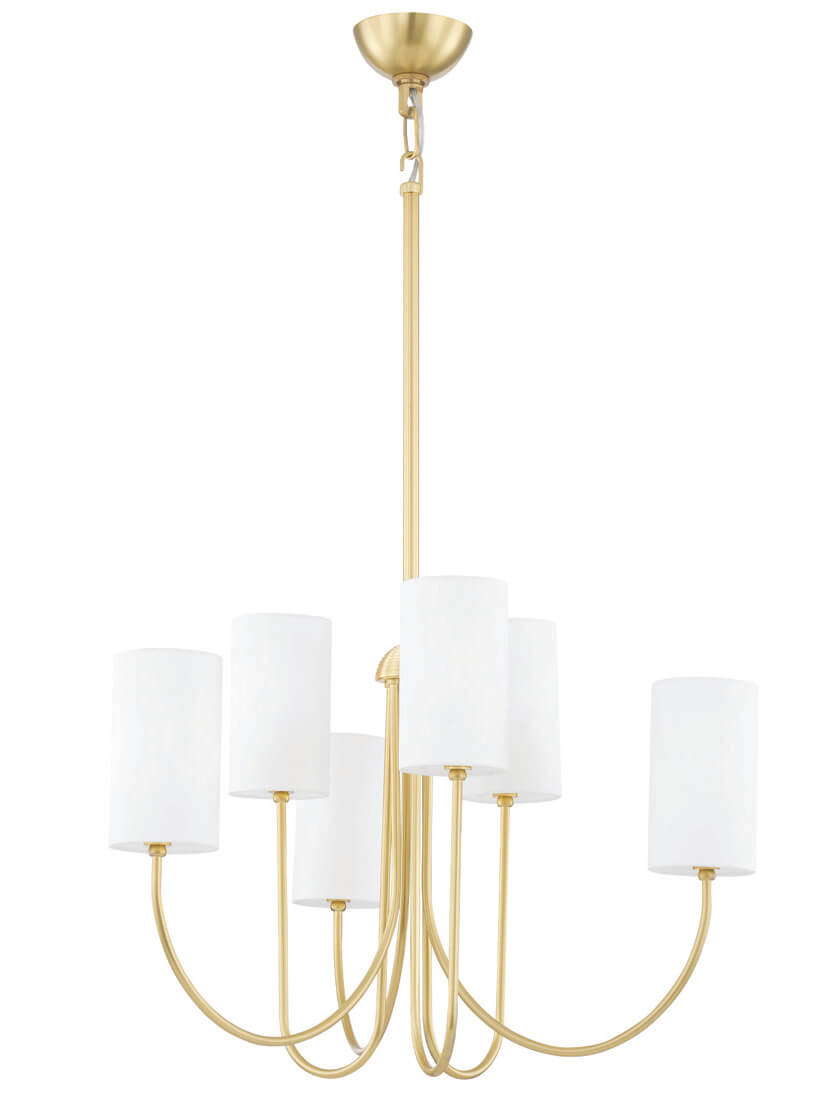 Delicate swooping arms lend a sense of musicality to our 6 light Harlem chandelier while the linen drum shades provide a note of visual rest. The elongated, gestural frame takes cues from ornate vintage chandeliers, while the fine lines and essential hardware offer a pared-down contemporary update.