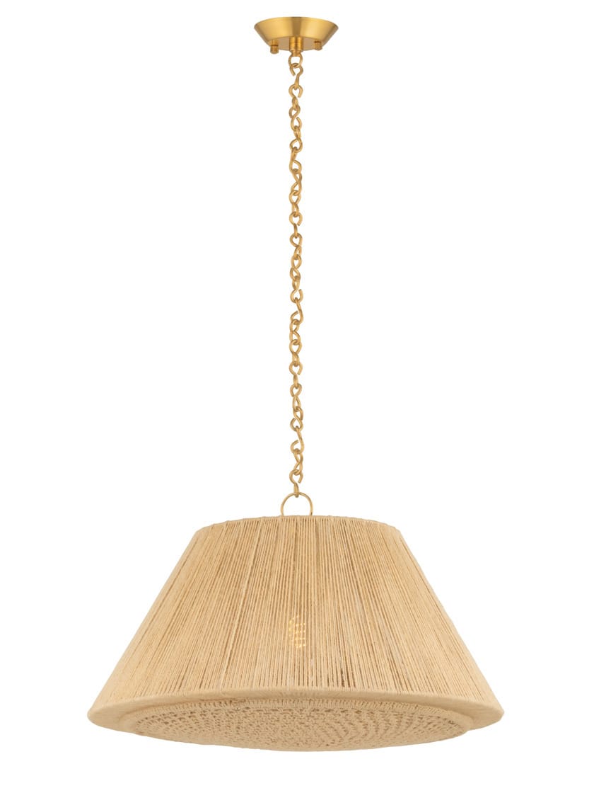 Woven in different patterns and directions, the fine details of Mystic create a compelling display of craftsmanship. The side walls feature a traditional vertical string construction, while the lower surface has been constructed using a decorative crochet technique. The dyed jute fibers lend an air of natural softness, making this pendant perfect for eclectic or coastal design themes.