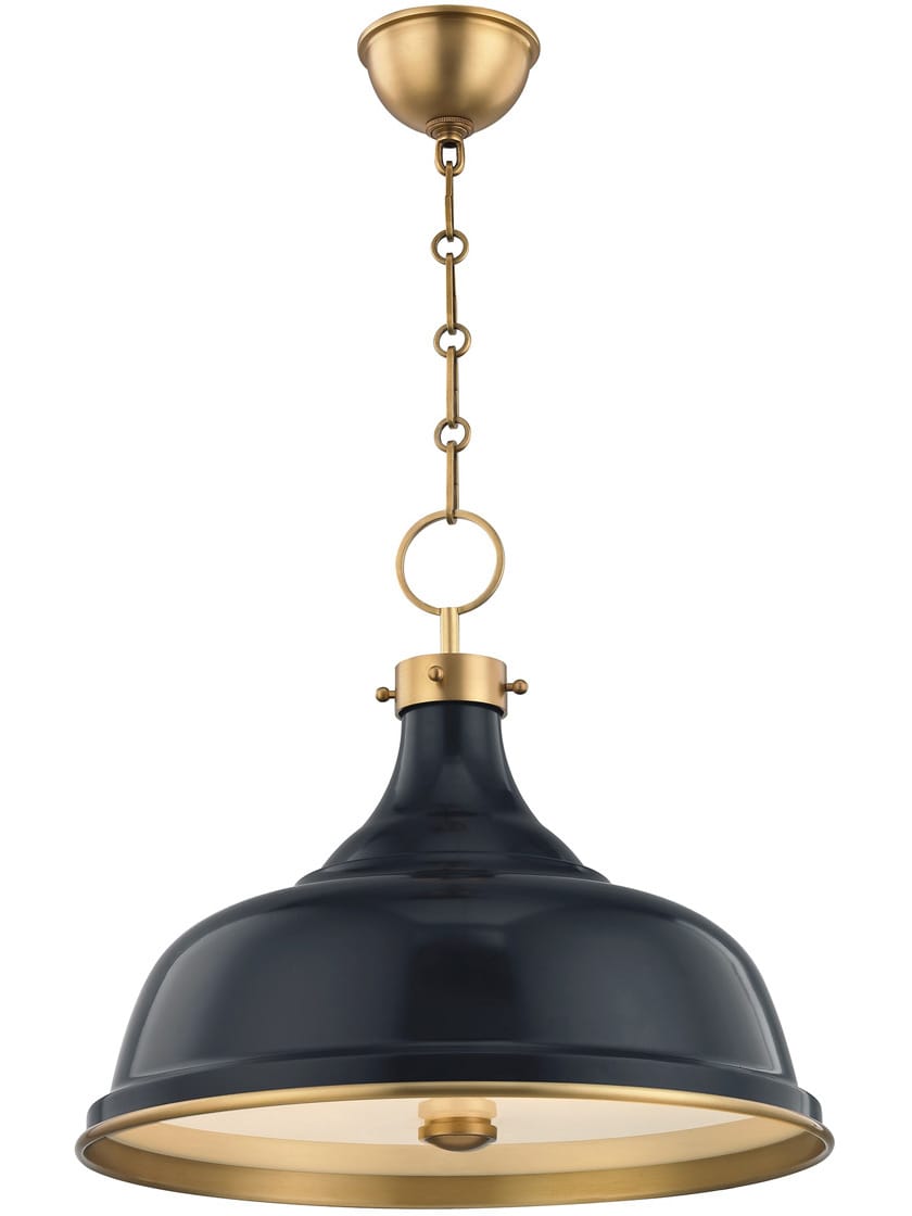 Simple, easy, and approachable, the 3 light Painted No.1 pendant's beautiful colors exude a casual elegance. Its classic curved metal shade has a timeless appeal. A white glass diffuser at the bottom provides just the right kind of light.