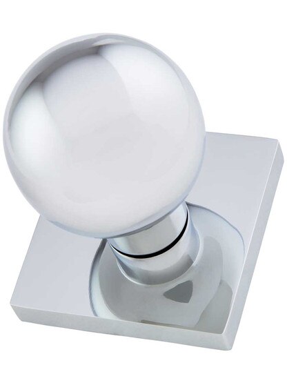 This sleek modern interior door set features square rosettes and smooth, spherical knobs. Made of premium forged brass, it comes in 4 classic finishes.