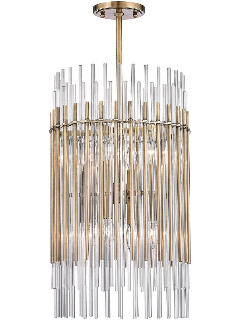 From the side or from underneath, Wallis presents an interesting perspective. By staggering glass and metal rods of varying lengths, layered in a classic drum shape, this 8 light pendant manages to feel both contemporary and familiar. At the same time, it directs light vertically and diffuses it horizontally.