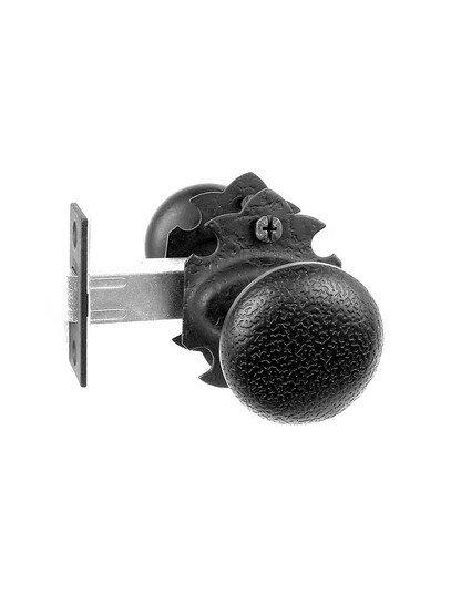 This charming interior door set is ideal for English Tudor, French Country or other romantic European style homes. The fanciful rosette and petite knob are made of forged iron with a rustic texture and smooth black lacquer finish. Choose from passage, privacy and single dummy functions.