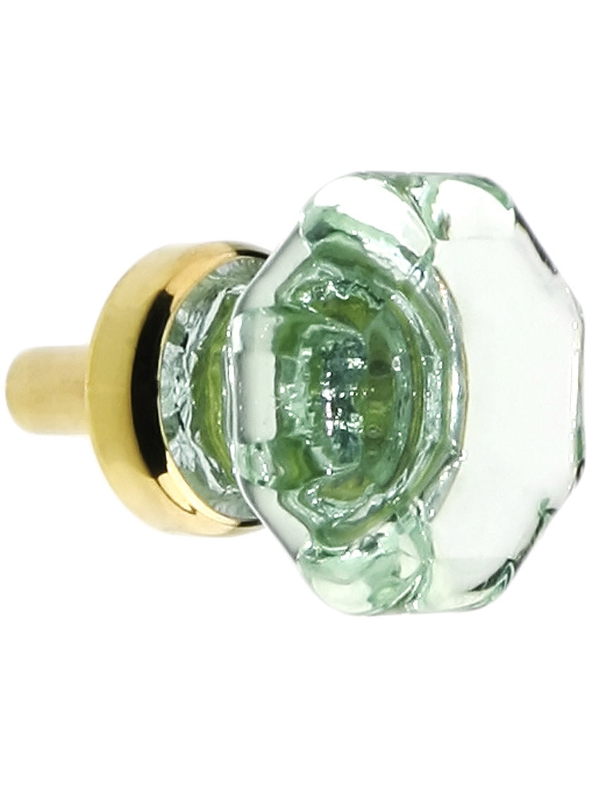 Pale Green Octagonal Glass Knob with Brass Base 1 1/8-Inch Diameter