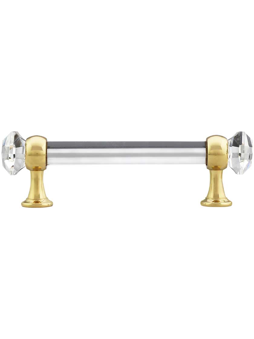 4" On Center Hexagonal Cut Glass Handle With Solid Brass Bases