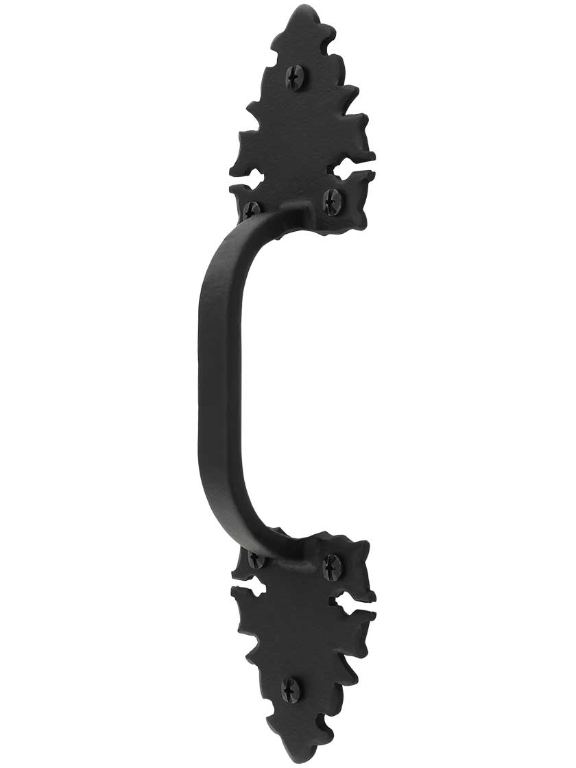 Inspired by the hardware of 16th-Century England, this rugged 10 7/8-Inch Warwick Door Pull is ideal for Tudor, French-Country or other romantic, European style homes. Use it indoors or out on gates, wardrobes or other non-latching doors. Made of forged iron with a lacquer coating.