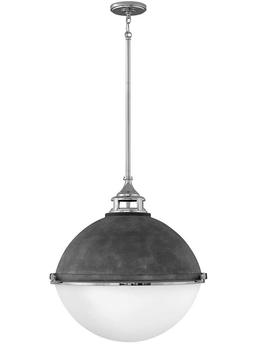 The Fletcher 22-inch chic vibe transcends style boundaries. Its seamless dome features a cast-fitter and elegant capture ring, while decorative cast knobs secure its etched, opal-glass shade. Spanning vintage to industrial, classic to transitional, it seamlessly unifies any decor declaration.