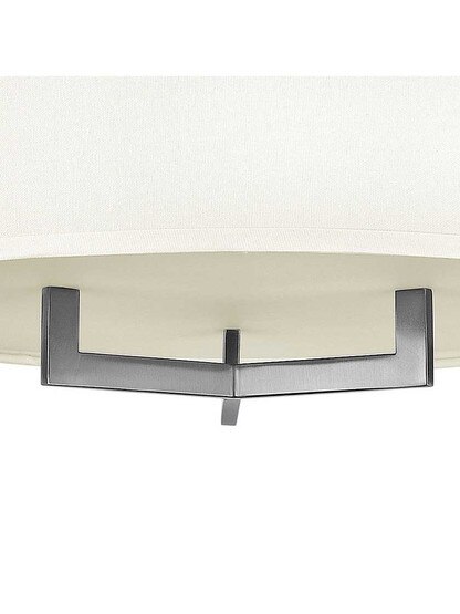 Blending fine materials, clean lines and subtle textures, the Hampton Series is Mid-Century lighting at its best. Made of solid brass with a brushed bronze or nickel finish and glowing linen shade, this large ceiling light is a dramatic addition to your living room, foyer or bedroom.
