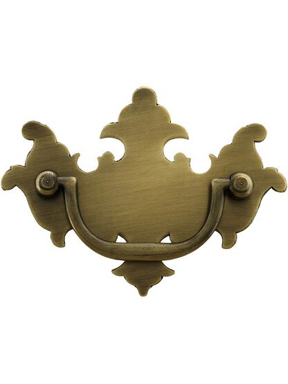 This fine reproduction of a late 18th century Chippendale-style 2 1/2-inch center-to-center pull is a beautiful enhancement for drawers and cabinets alike. Cut from sheets of solid brass, it’s ideal for new furniture, or as a replacement for a worn or damaged piece. It features a smooth, elegant handle for a pleasant feel, and the sturdy back plate will stand up to years of repeated use. Choose from an unlacquered or antique-brass finish.