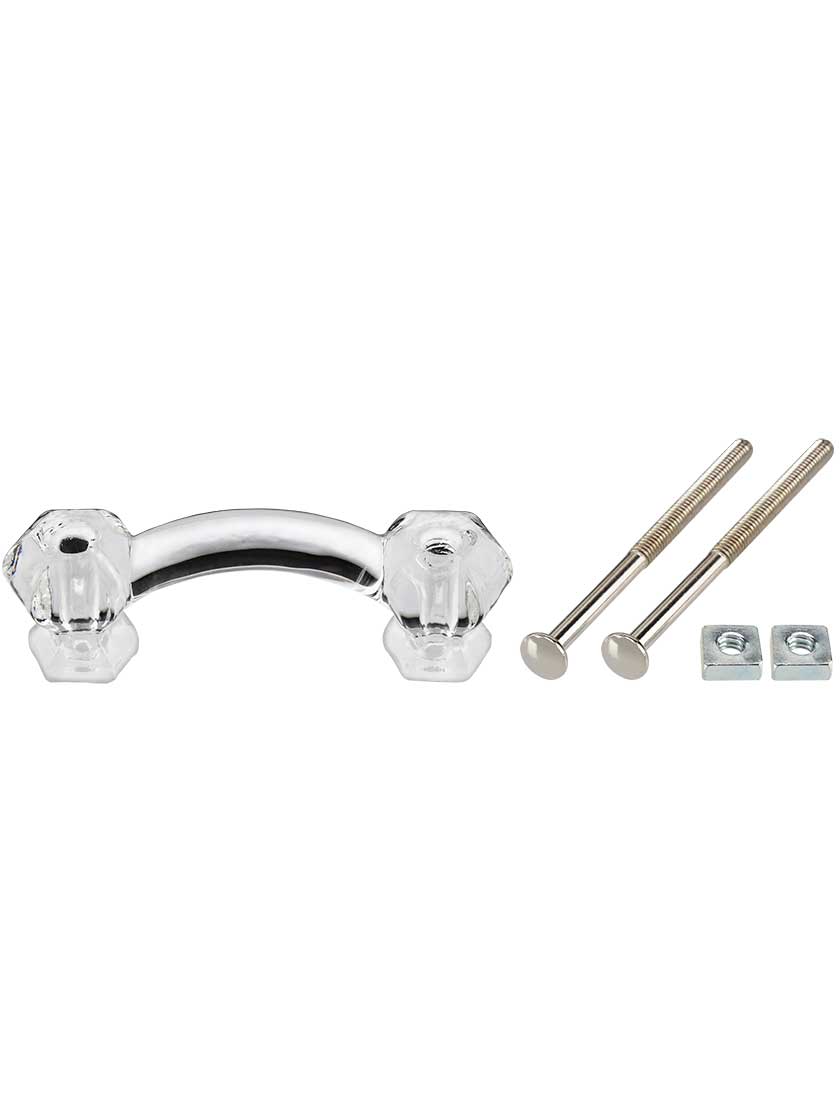 Hexagonal Glass Bridge Drawer Pull With Nickel Bolts