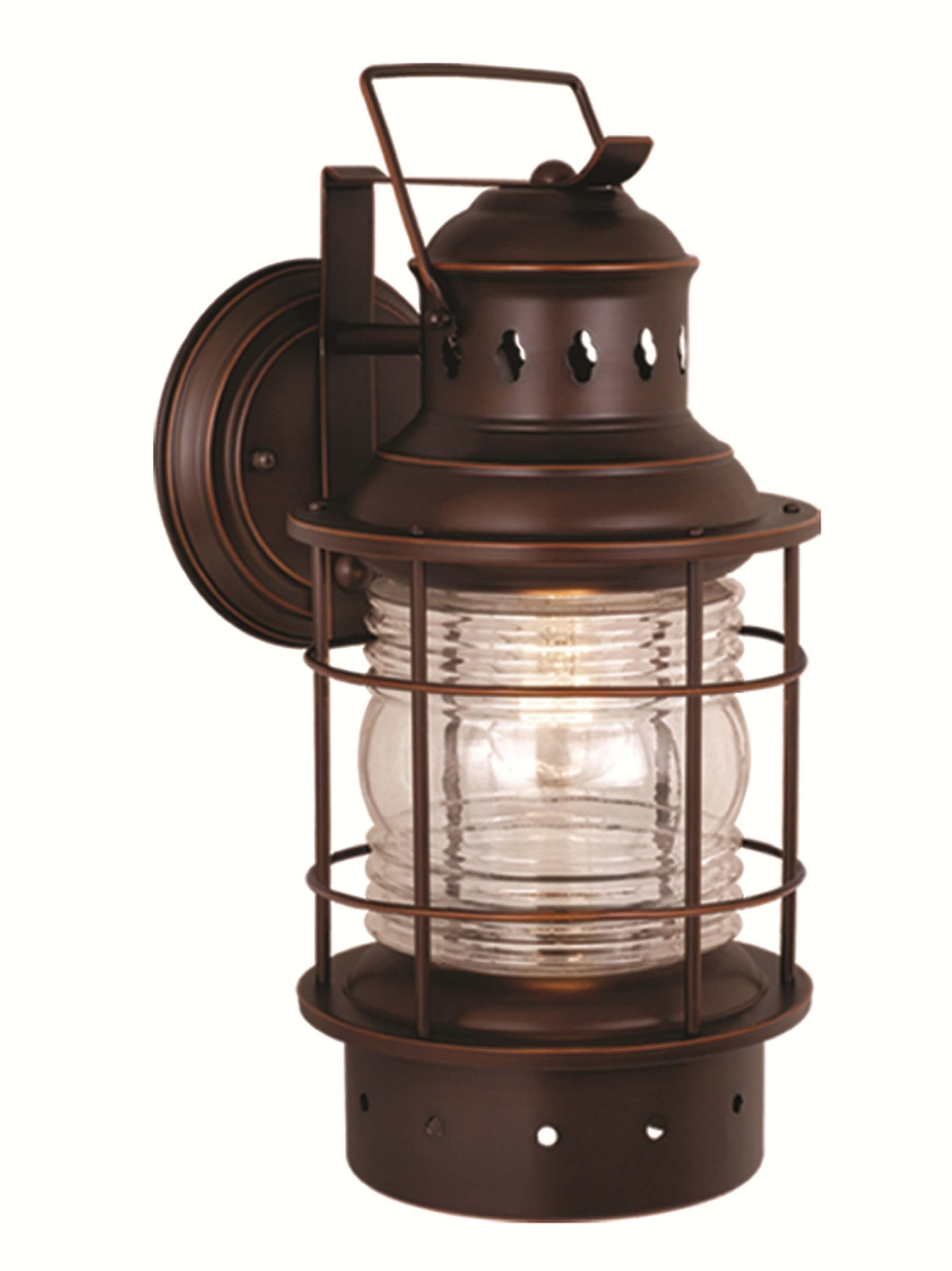 Reminiscent of grand old train stations of the past, the Hyannis 8-Inch Outdoor Wall Sconce brings Colonial flavor to your decor. For added authenticity, the shade is fashioned after vintage-glass insulators of the mid-1800s. Choose from a smooth bronze or textured-black finish.