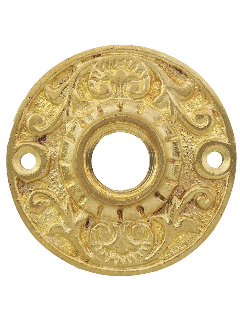 Charming and decorative, this rosette is a popular choice for restoration or vintage new construction. Made of solid cast brass, it features a lively scroll pattern. Comes in your choice of two classic finishes. Pair it with our matching keyhole cover.