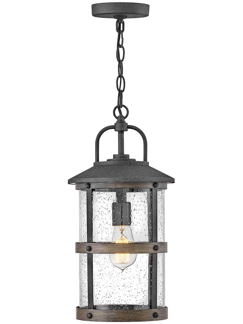 Enjoy the beauty of interior lighting aesthetics outside with the Lakehouse 1-light pendant. This fixture’s stylish vibe is both natural and elevated, and will instantly add polish to your outdoor living space. Ideal for a coastal or vacation home, its seedy glass lantern shade features an attractive array of bubbles for a nautical touch.