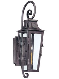 The Parisian Square Large Exterior Wall Sconce exhibits classic New Orleans flair. Crafted from hand-forged iron, a coarse, aged-pewter finish, and panels of clear glass, this genteel fixture brings a luminous glow wherever you need it. And, its hinged front makes it easy to change the bulbs.