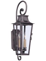 The Parisian Square Small Exterior Wall Sconce exhibits classic New Orleans flair. Crafted from hand-forged iron, a coarse, aged-pewter finish, and panels of clear glass, this genteel fixture brings a luminous glow wherever you need it. And, its hinged front makes it easy to change the bulbs.