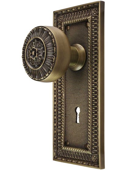 A House of Antique Hardware Exclusive! Our Victorian Mortise-Lock Set with Matching Knobs is the most intricate and elegant you'll find anywhere. The exquisite Italian Renaissance design, with its fluted border and floral accents, is a faithful recreation of Russell and Erwin's Pisano pattern of 1897. Precision cast in solid brass, they're beautifully detailed and incredibly substantial. Suited for restorations or new construction, this decorative set adds a touch of understated luxury to any interior. Choose from four popular finish options.