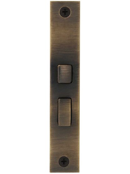 Our reproduction privacy mortise lock with thumbturn and 2 1/2-inch backset was inspired by those used during the early 20th century on bedroom and bathroom doors. It features a 5/32" thick solid-brass face plate with a steel case and interior components. Suited for almost any decor, this lock is finished with our living antique patina! The set includes a solid brass thumbturn with oval escutcheon but can also be used with privacy backplates. Reversible for left or right-hand doors.