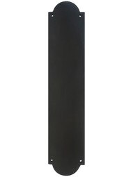Hand-forged from solid iron, this rugged arch-top push plate presents an authentic colonial appearance. Nearly 3/8-inch thick, with a hammered beveled edge, it stands up to heavy use. Its surface is phosphate treated then lacquered, for rust-resistant, long-lasting wear.