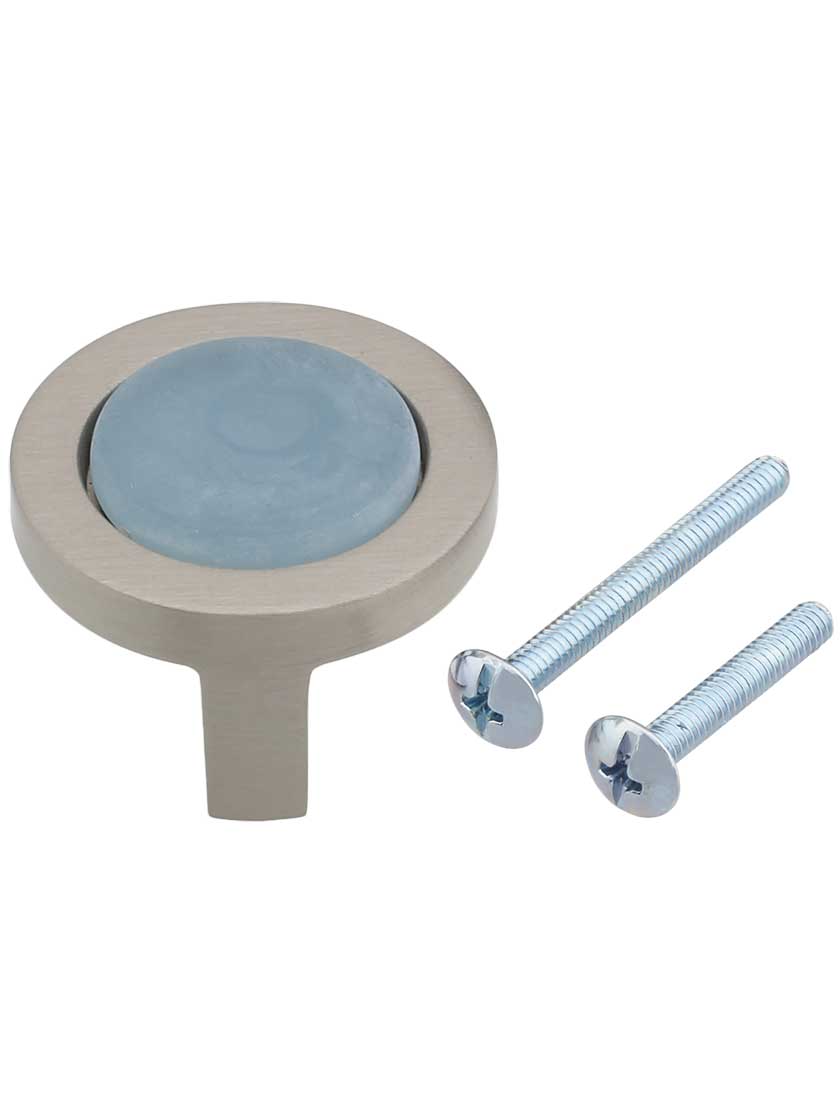 Spa Round Cabinet Knob with Blue Glass Inlay